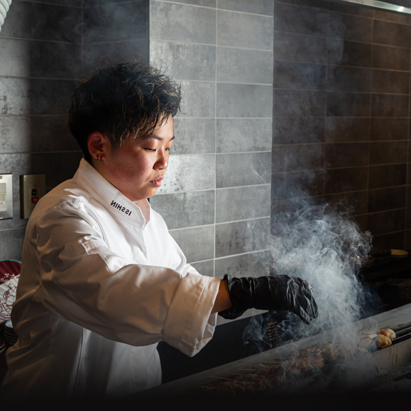 こだわりの本格炉端焼き「藁焼き」、「炭焼き」を目の前でお楽しみいただけます。